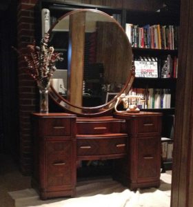We assumed we would be able to rent everything we needed for our upcoming shoot, a noirish look at desire for my Pulp! series. Principal among the items we needed was a vanity. But it couldn’t just be any vanity, it had to be from the 30s or 40s, preferably Art Deco and it had to have OOMPH. The kind of vanity that you’d see Veronica Lake luxuriating herself at while gazing at you seductively.
